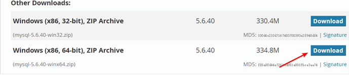 (2)单击5.6版本,往下拉,根据系统选择对应的版本,本人选择64位的,该包是免安装包,需要自己配置环境,官方给的是免安装包,