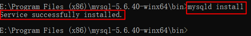 再输入mysqld install命令 进行安装服务,看到下面条语句表示成功