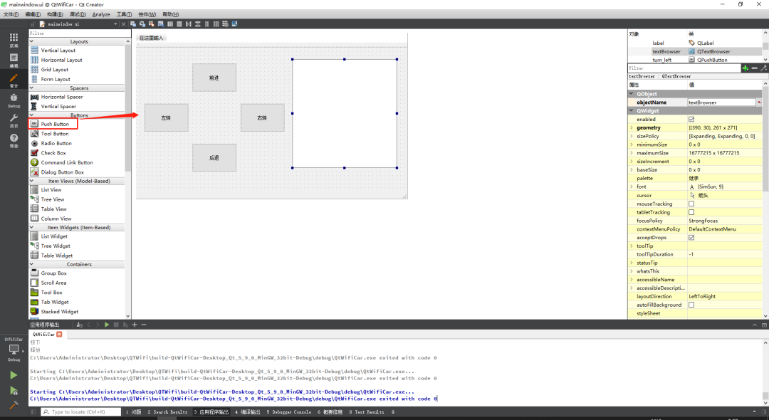包含前进、后退、左转、右转4个按钮,外加一个显示