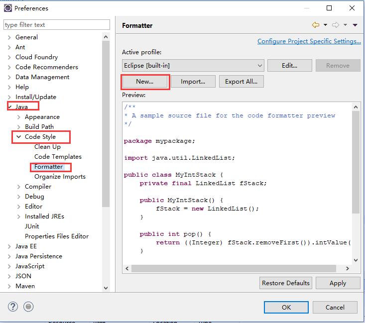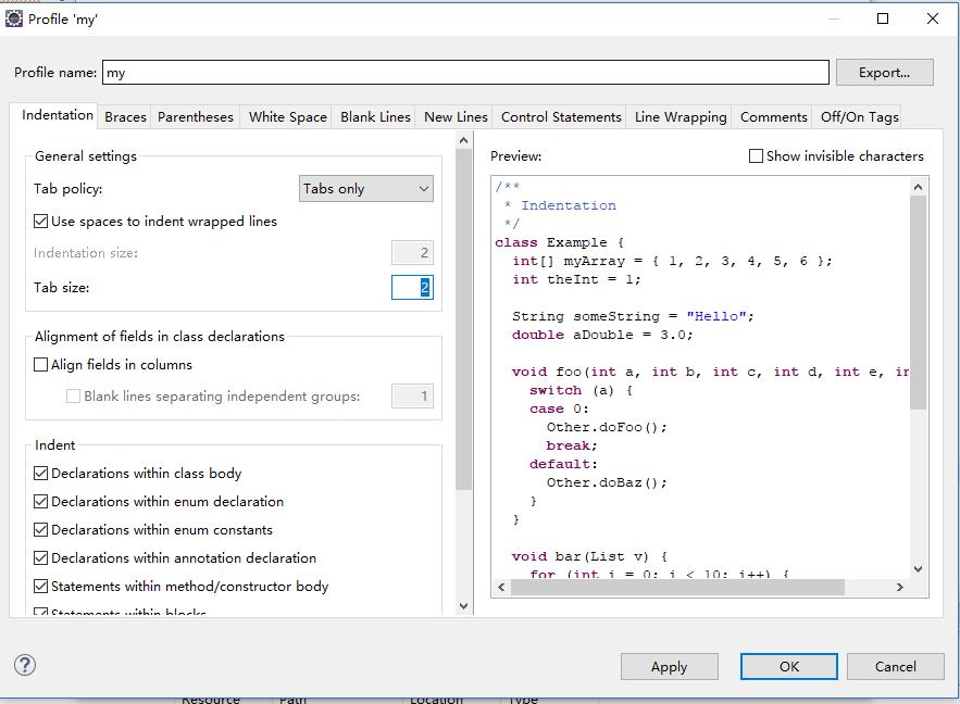 代码缩进便于阅读,但是不同的人习惯不一样,有的是Tab键有的是两个空格,Eclipse默认Tab键有4个空格。这个导致问题很多。据调查缩进2个空格的人工资更高。所以这里我们设置2个空格作为统一缩进的方法。如下图所示,依次点击Window - Preferences - Java - Code Style - Formatter - New,新建一个之后我们改变一下indent设置就行了,把原来的4改成2并勾选Use spaces to indent wrapped lines即可。