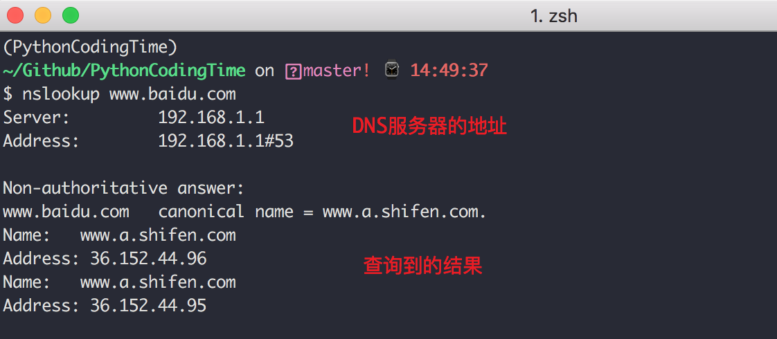 nslookup也是常用的一个查询 DNS 解析结果的工具