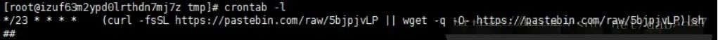 2、于是又 使用crontab -l 查看,赤裸裸定时任务,这又是什么鬼,矿机不是解决了吗?这那来的任务,