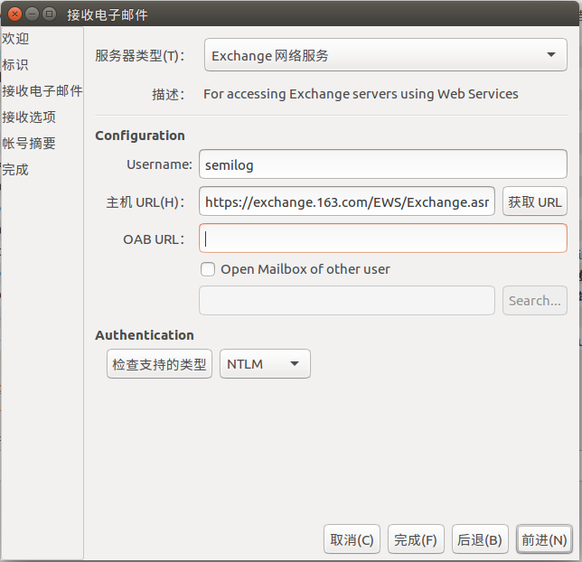 ubuntu 下使用 Evolution 收发 Exchange Web Server 邮件