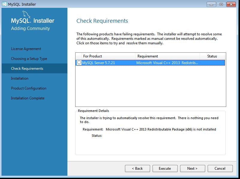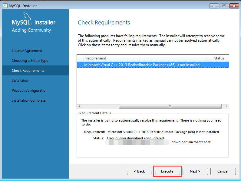 需要ViusalC++ 2013 的环境,点Execute会失败,原因是我是断网的状态,访问不了外网。点Cancel退出。