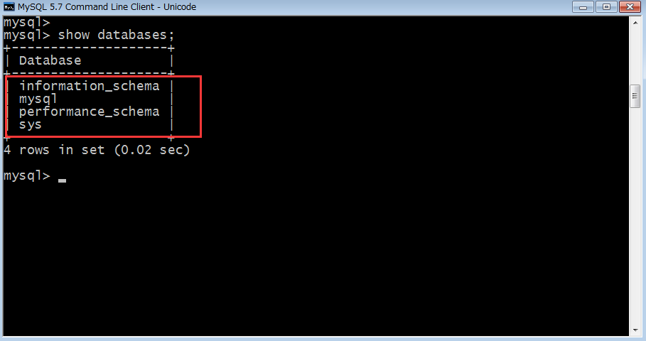 show databases命令,显示默认的4个数据库