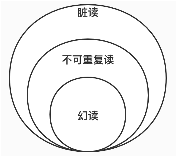 脏读、不可重复读和幻读有以下的包含关系,如果发生了脏读,那么幻读和不可重复读都有可能出现。