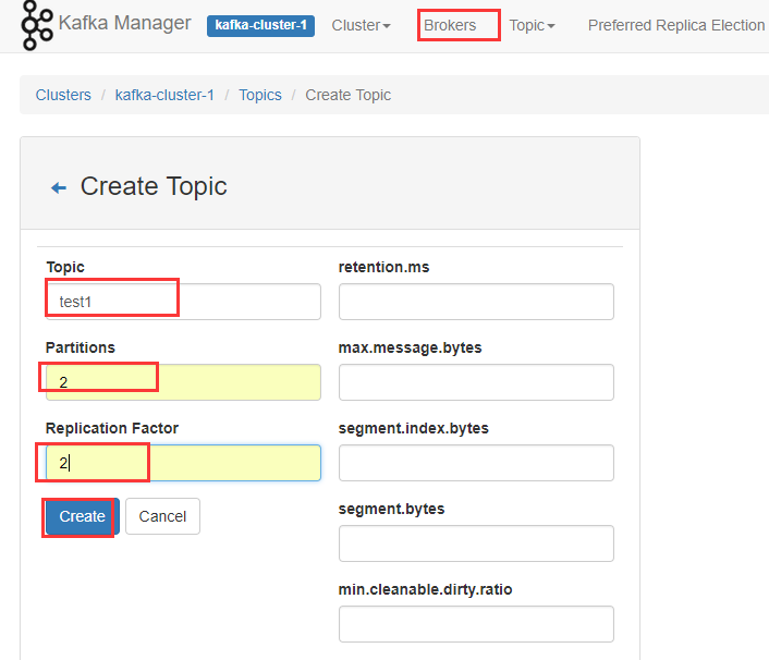 点击【Topic】>【Create】可以方便的创建并配置主题。如下显示。