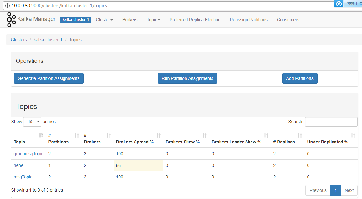 为了简化开发者和服务工程师维护Kafka集群的工作,yahoo构建了一个叫做Kafka管理器的基于Web工具,叫做 Kafka Manager。这个管理工具可以很容易地发现分布在集群中的哪些topic分布不均匀,或者是分区在整个集群分布不均匀的的情况。它支持管理多个集群、选择副本、副本重新分配以及创建Topic。同时,这个管理工具也是一个非常好的可以快速浏览这个集群的工具,有如下功能: