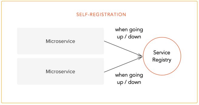 如图,自己注册就是指微服务节点在启动的时候,自己去服务注册中心登记注册了,把自己的信息和状态传过去。这种方式整体结构比较简单,对于注册中心而言也比较省事,但是对于微服务节点而言,每个微服务都得包含这么一段注册的逻辑代码,架构上看起来不是很优美。