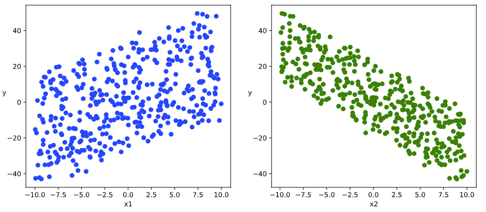 ax2.scatter(X[:,1],Y[:,0], c = "g",label = "samples")