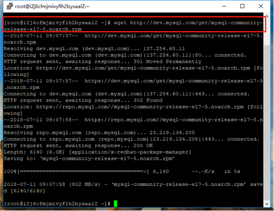 指令:wget http://dev.mysql.com/get/mysql-community-release-el7-5.noarch.rpm
