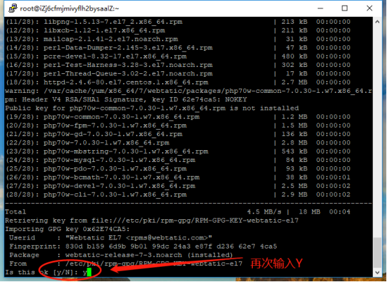 安装的时候有两次要输入Y回车,才会继续安装的,乖乖输入就好了。