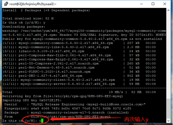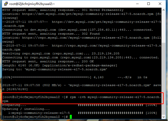 执行指令:rpm -ivh mysql-community-release-el7-5.noarch.rpm