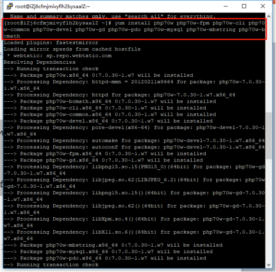 安装指令:yum install php70w php70w-fpm php70w-cli php70w-common php70w-devel php70w-gd php70w-pdo php70w-mysql php70w-mbstring php70w-bcmath
