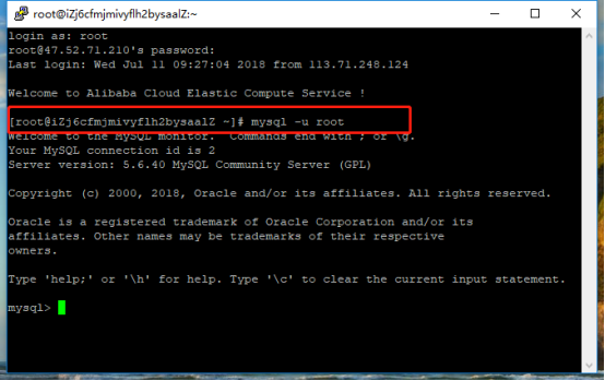 初始的MySQL登录是不用密码的使用下面的指令就可以直接进去。