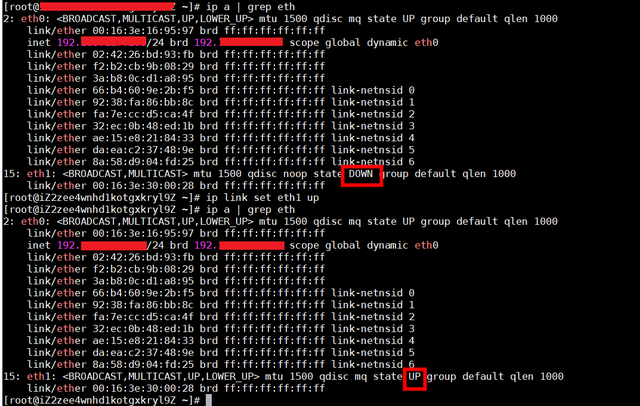 4)为什么解绑之后重新绑定至原有实例还是不可以呢?原因就在于解绑后重新绑定网卡后该网卡的state仍然是DOWN状态,需要重新up网卡;