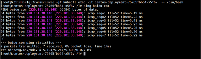 kubectl exec -it centos-deployment-75765fbb54-x5f6v -- /bin/bash,进入pod内: