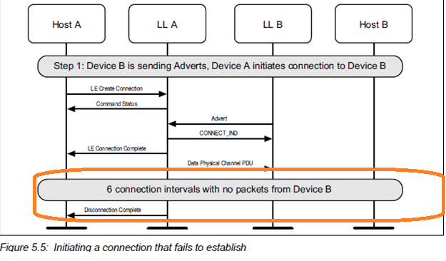 如下图所示,这就是一个连接失败的例子,原因是B没有回复A的 Data Physical Channel PDUs