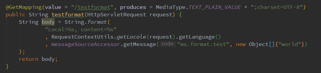 根据测试类中请求的Locale值不同,获取到的格式化的文本也不同。