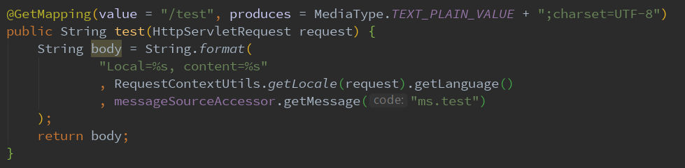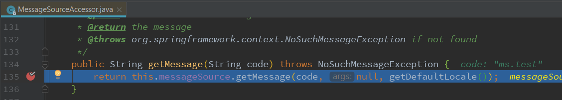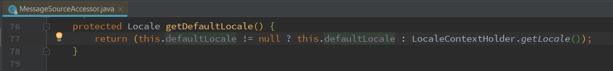 通过MessageSourceAccessor根据code获取具体信息时,如果默认配置的本地化对象为空,则通过LocaleContextHolder获取。