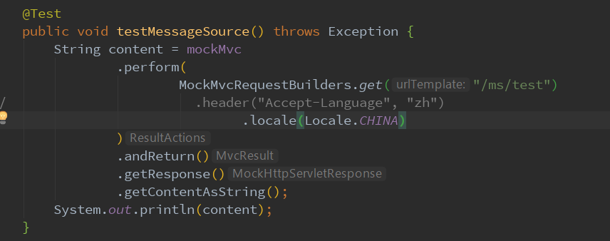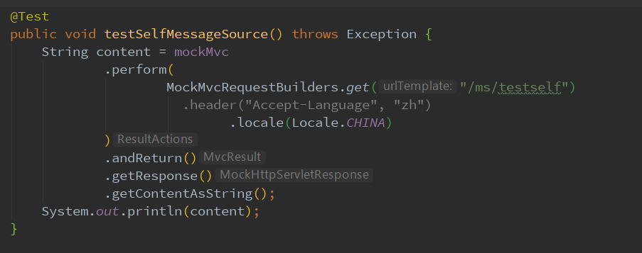 编写测试类,指定当前请求的Locale值或者设置请求头的header值:Accept-Language:zh