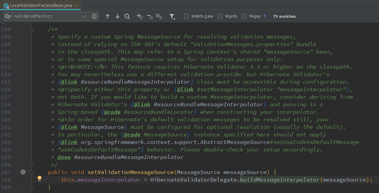 通过LocalValidatorFactoryBean获取的validator是如何根据不同的地区加载不同校验资源文件呢?hibernate-validator暴露了一个消息插补器(MessageInterpolator),spring正是重新代理这个消息插补器。