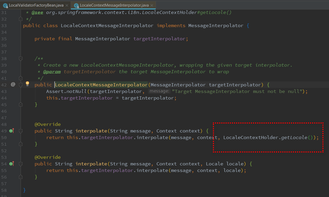 通过LocaleContextMessageInterpolator源码,可以看到最终还是通过LocaleContextHolder获取当前时区信息。