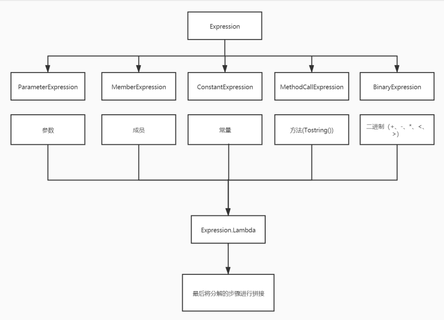 4、我们可以看出Expression就是进行图下的不断拆解,然后在进行组装lambda执行
