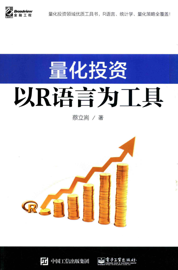 《量化投资以R语言为工具》,蔡立耑著,主要讲解量化投资的思想和策略,并借助R语言进行实战。由三部分组成:首先,对R编程语言的介绍,通过学习,读者可以迅速掌握用R语言处理数据的方法,灵活运用R语言解决实际金融问题;其次,向读者介绍量化投资的理论知识,主要讲解量化投资所需的数量基础与量化投资的类型等方面;最后,将以上两部分内容结合起来,讲述如何在R语言中构建量化投资策略。