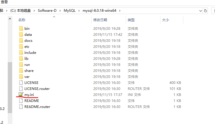 1、 首先在安装的mysql目录下创建my.ini文件