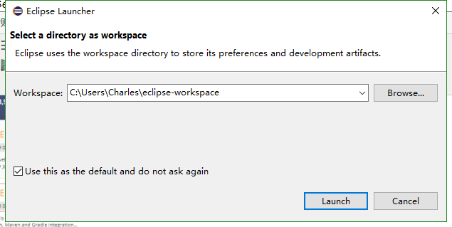 双击eclipse.exe(第一次可能需要等待一阵),然后弹出workspace的设置。