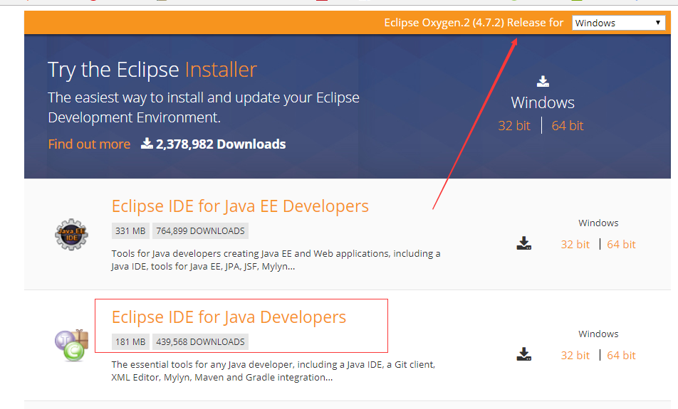 Eclipse(4.7.2)免安装版Oxygen.2的下载地址:http://www.eclipse.org/downloads/eclipse-packages/