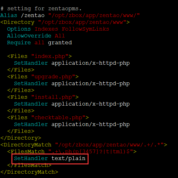 把 /opt/zbox/etc/apache/httpd.conf 目录下所有的 SetHandler text/plain 改为 SetHandler application/x-httpd-php ,然后重启服务。