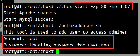 执行/opt/zbox/zbox restart 命令重启Apache和Mysql。