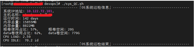 echo " 根卷使用占比: ${OS_ROOT_DISKS_USE_PRECENT}, 根卷空闲: ${OS_ROOT_DISKS_AVAIL}"