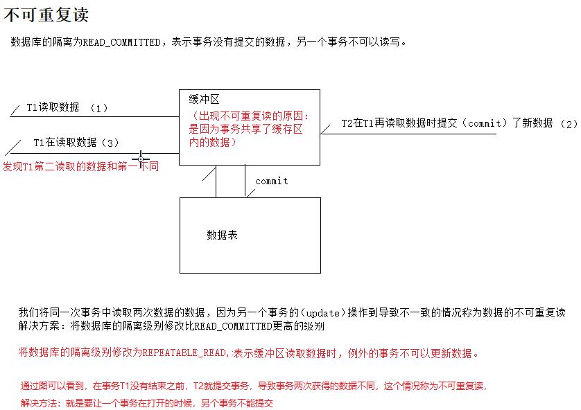 - ISOLATION_READ_COMMITTED:一个事务只能读取另一个事务的提交后的数据