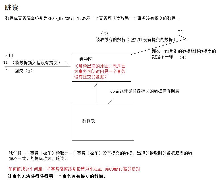 - ISOLATION_READ_UNCOMMITTED :一个事务可以读取另一个事务的没有提交的数据