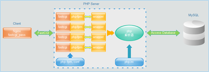FastCGI的主要优点是把动态语言和HTTP服务器分离开来,是Nginx专一处理静态请求和向后转发动态请求,而PHP/PHP-FPM服务器专一解析PHP动态请求。