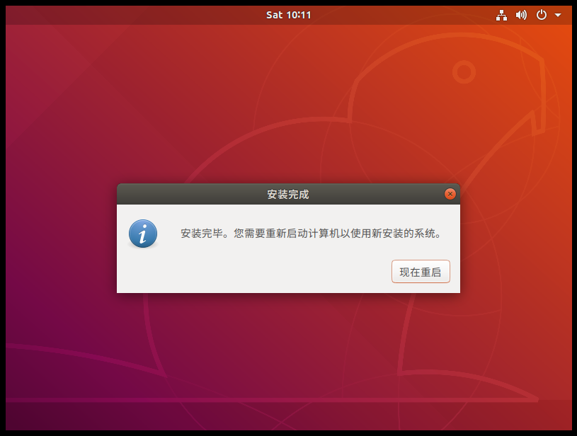 安装完成,提示重启系统,注意重启的时候的去掉挂载的ISO镜像,我没有去掉启动的时候没有进入系统提示让我删除挂载的ISO