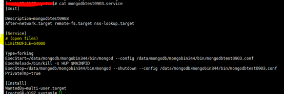 我们来具体分析下systemctl 开启的 mongodb 服务(此服务定义为mongodbtest0903)。