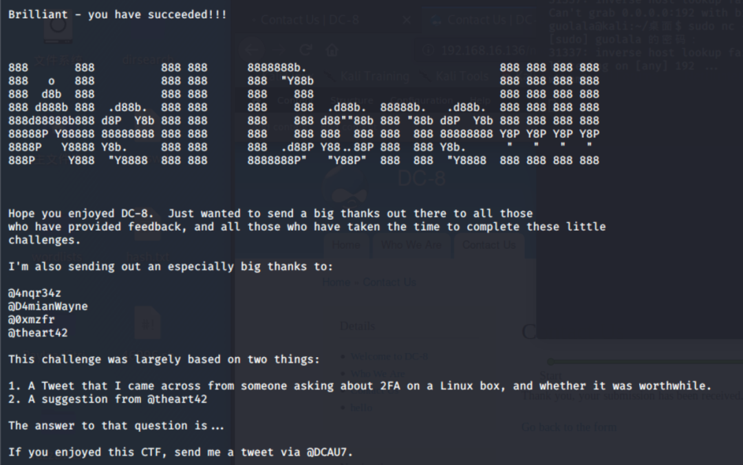 保存设置后无任何回显,提交表单也没有回显信息,根据提示猜测应该是直接执行,用php反弹shell,提交表单后得到shell。