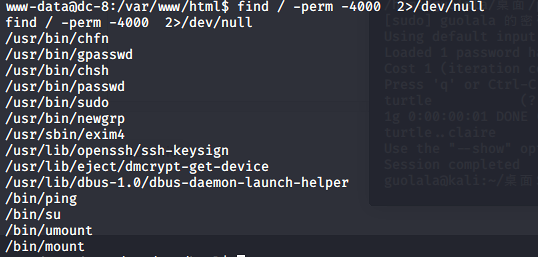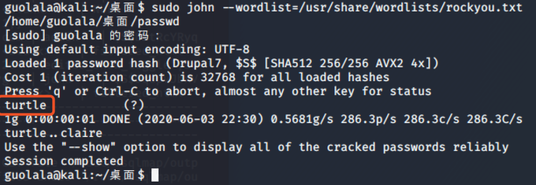 使用john破解密码,虽然没有爆出admin的密码,但是爆出了john的密码:turtle。