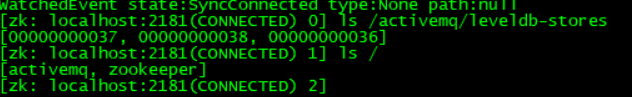 3.2、ls /activemq/leveldb-stores 查看ActiveMQ节点注册信息。