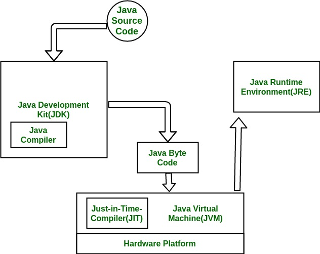 JVM作为JDK和JRE的重要组成,无论Java程序使用JRE还是JDK运行,都会由JVM去一行一行地执行Java程序,JVM被作为一个解释器(interpreter)。