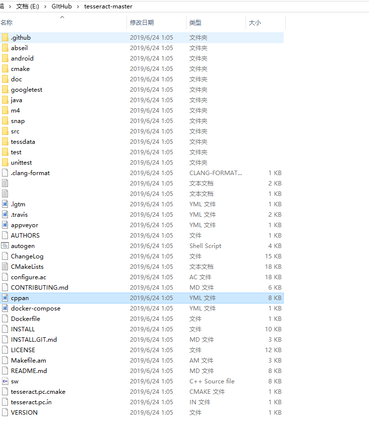 进入 解压后的Tesseract文件夹,可以发现有个cppan.yml,