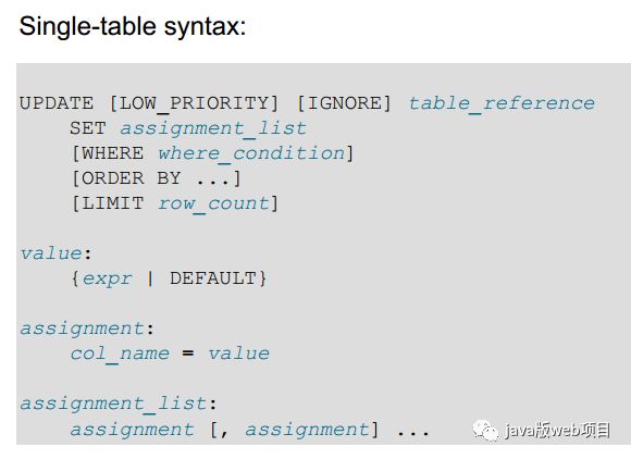 看起来,语法是完全没有问题,翻了翻MySQL官方文档的update语法: