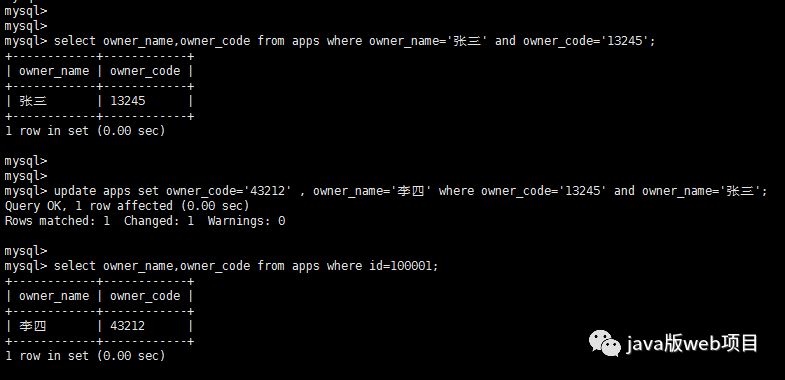 update apps set owner_code='43212' , owner_name='李四' where owner_code='13245' and owner_name='张三';