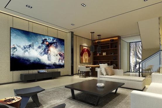 从观看最佳水平视角来看,美国电影电视工程师协会认为30度视角最为合适,而中国传统家庭客厅一般在3.5~4.5m的范围,根据30度角度计算最佳观看尺寸,产品尺寸可以扩大至90~105寸范围。而这个范围,恰好是激光电视能做到的。
