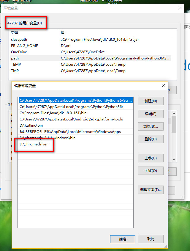 windows 下,新建一个命名为chromedriver文件夹,将解压的chromedriver.exe放进文件夹,再配置进path环境变量